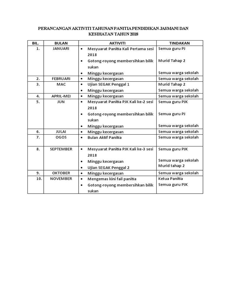 Perancangan Aktiviti Tahunan Panitia Pendidikan Jasmani Dan Kesihatan Tahun 2018 Pdf